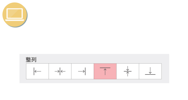 『整列』メニューの揃え方の一覧からご希望の揃え位置をクリックすると、キャンバスに合わせて選択したデザインが整列されます