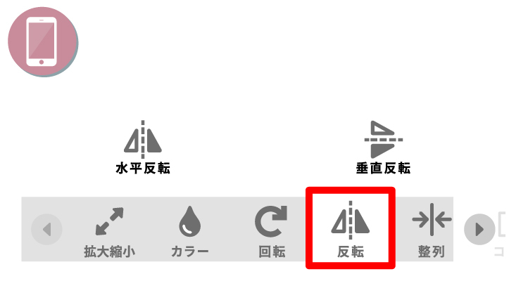 反転させたいパーツを選択した後、メニューにある『反転』をクリックします