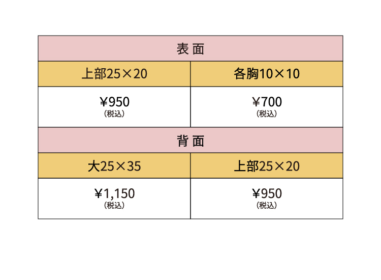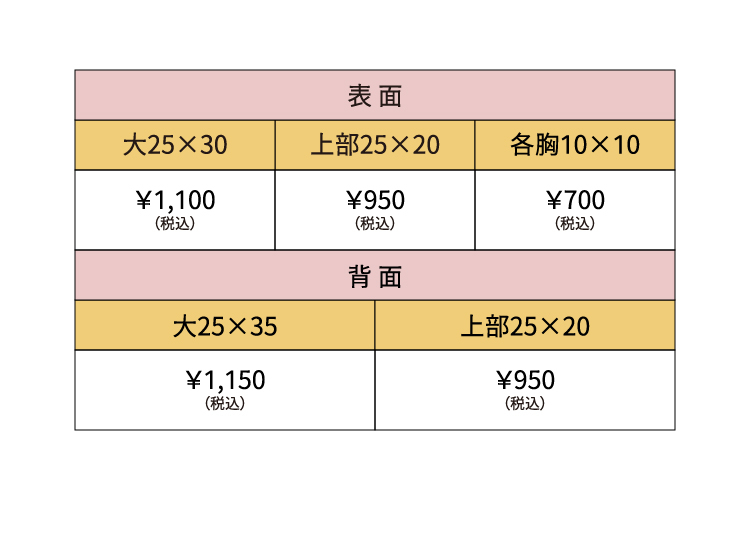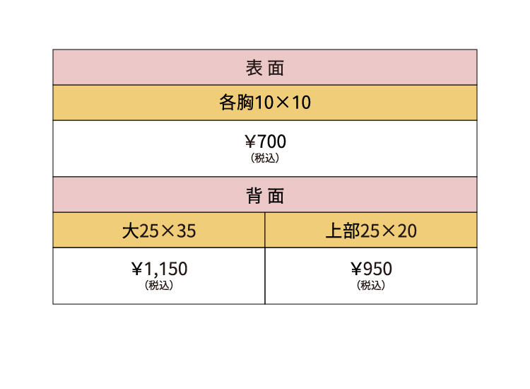 プリント範囲と価格のまとめです。
