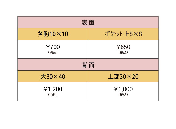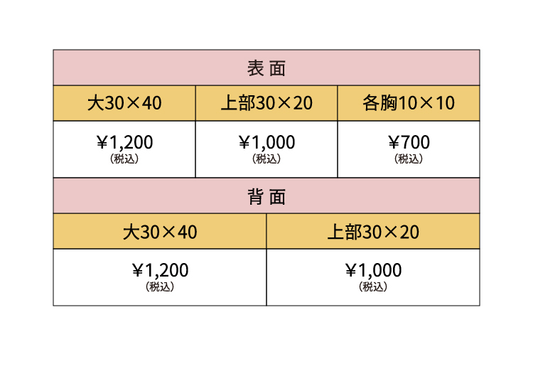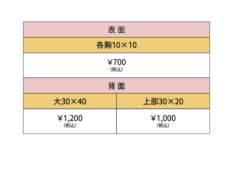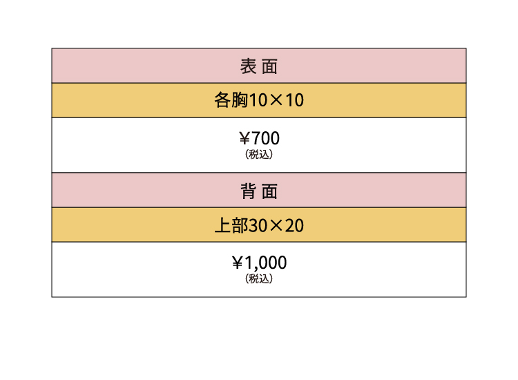 プリント範囲と価格のまとめです。