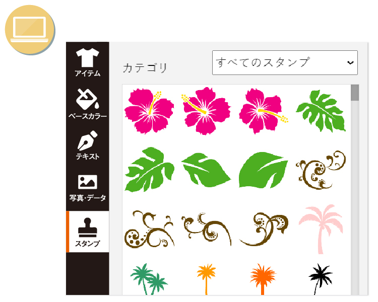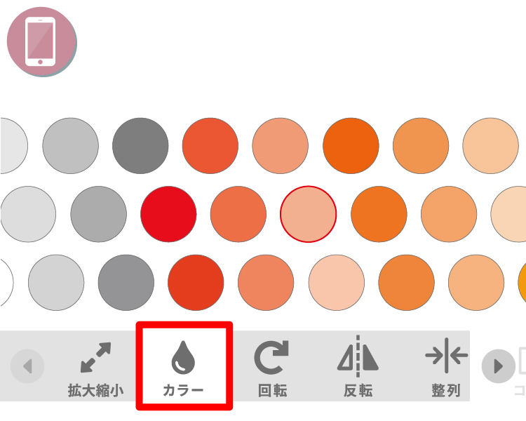 ※塗りカラーの数や設定色は、アイテム種類により異なります